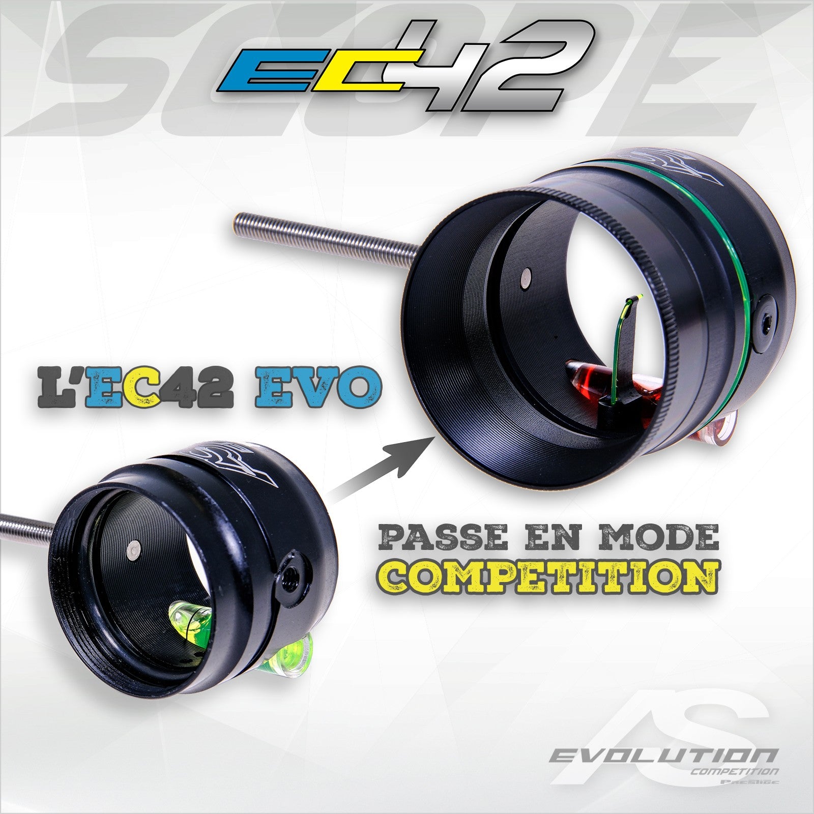 Le scope EC42 Evolution est la version grand diamètre de la gamme Evolution : ultra-léger, minimaliste, en aluminium, avec tunnel fermé et ambidextre. Son diamètre interne réel de 42mm offre un champ de vision encore plus large pour un confort visuel maximal en compétition.